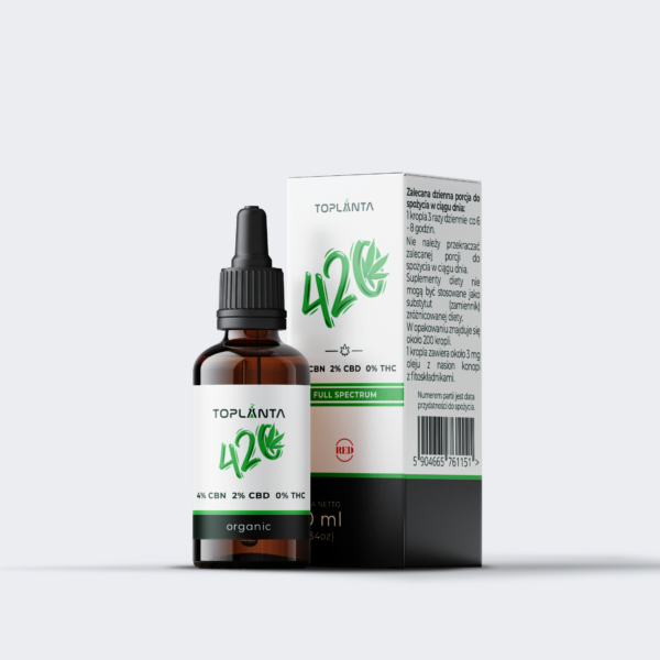 - Skład: Olej z nasion konopi z fitoskładnikami (CBD) (5 mg/kropla), ekstrakt z korzenia ashwagandhy (5 mg/kropla, w tym 0,5 mg witanolidów).