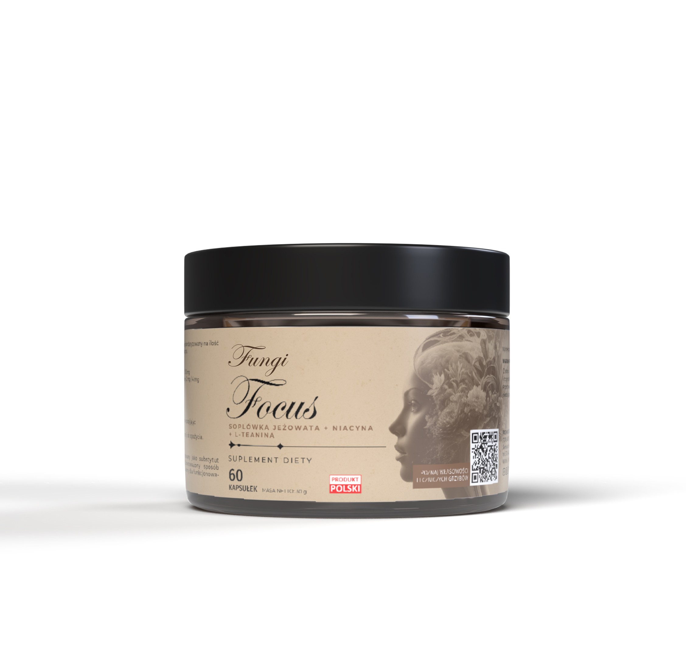 • Skład: ekstrakt z soplówki jeżowatej (Hericium erinaceus), L-teanina, niacyna (amid kwasu nikotynowego), kapsułka celulozowa (HPMC)